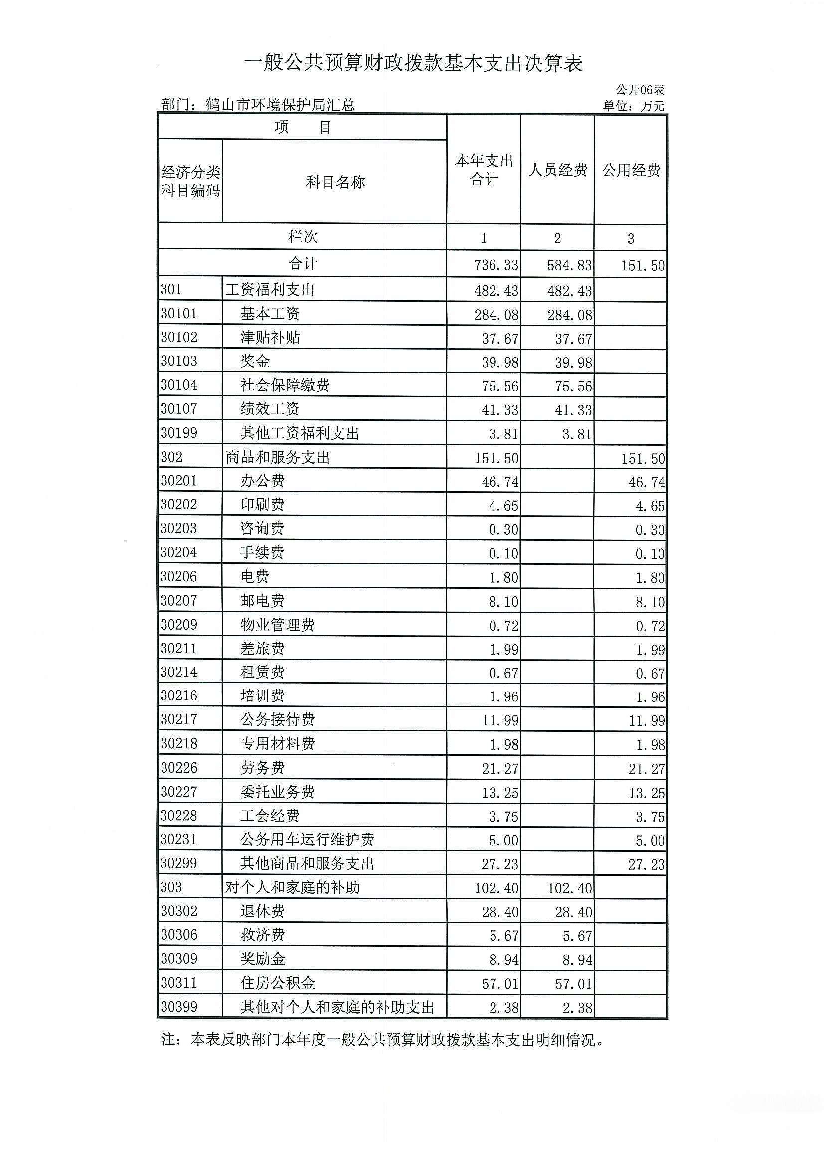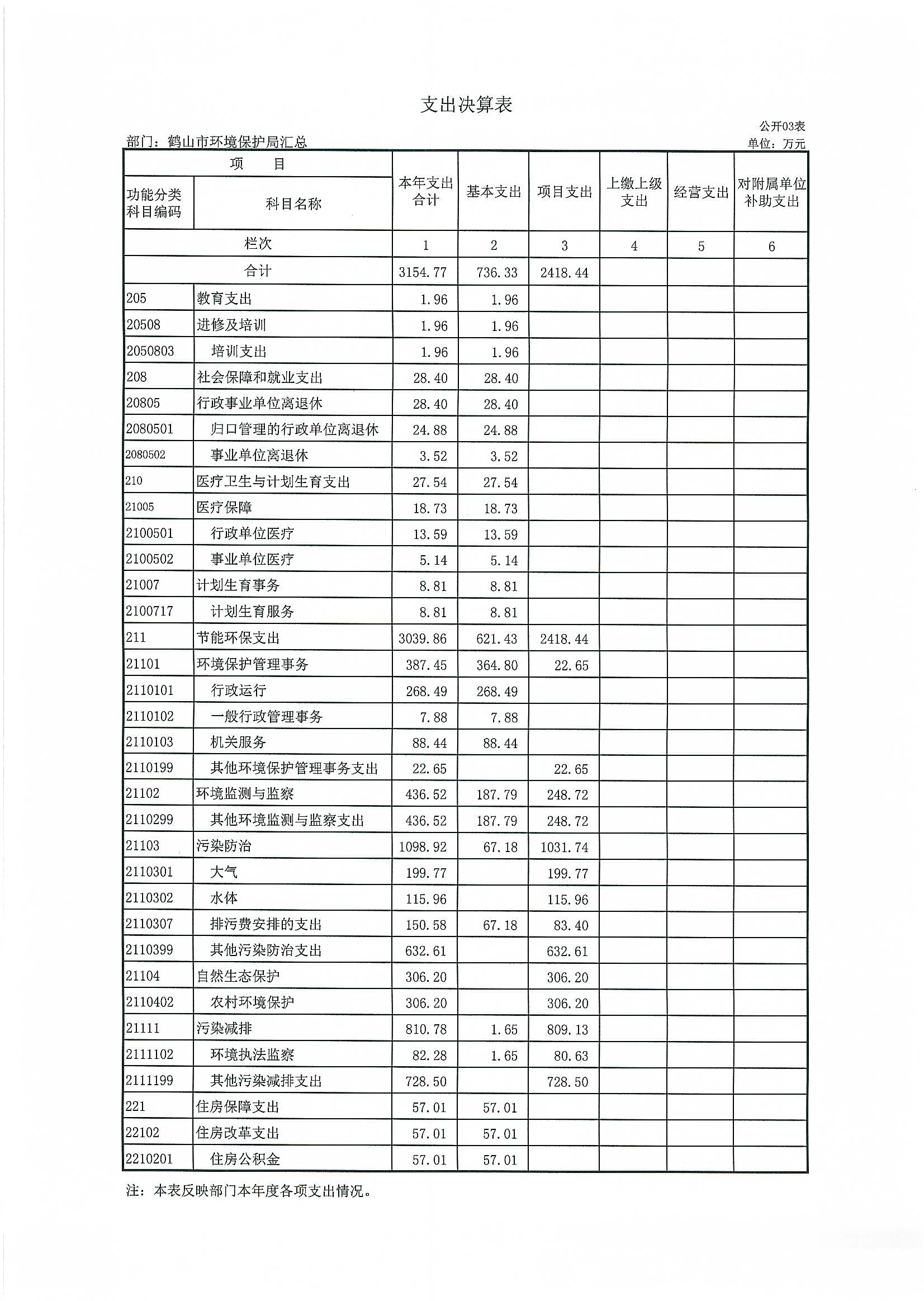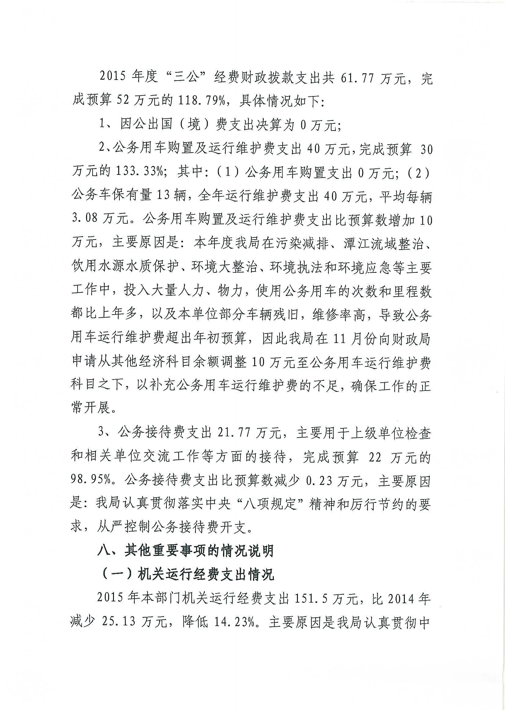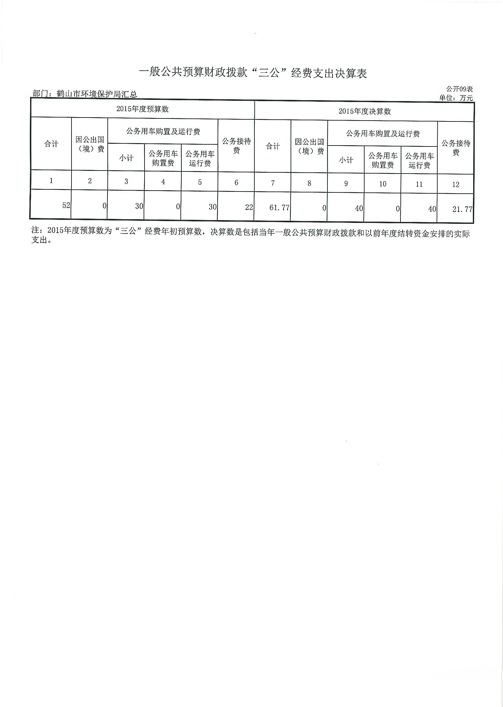 2015年鹤山市环境保护局部门决算公开