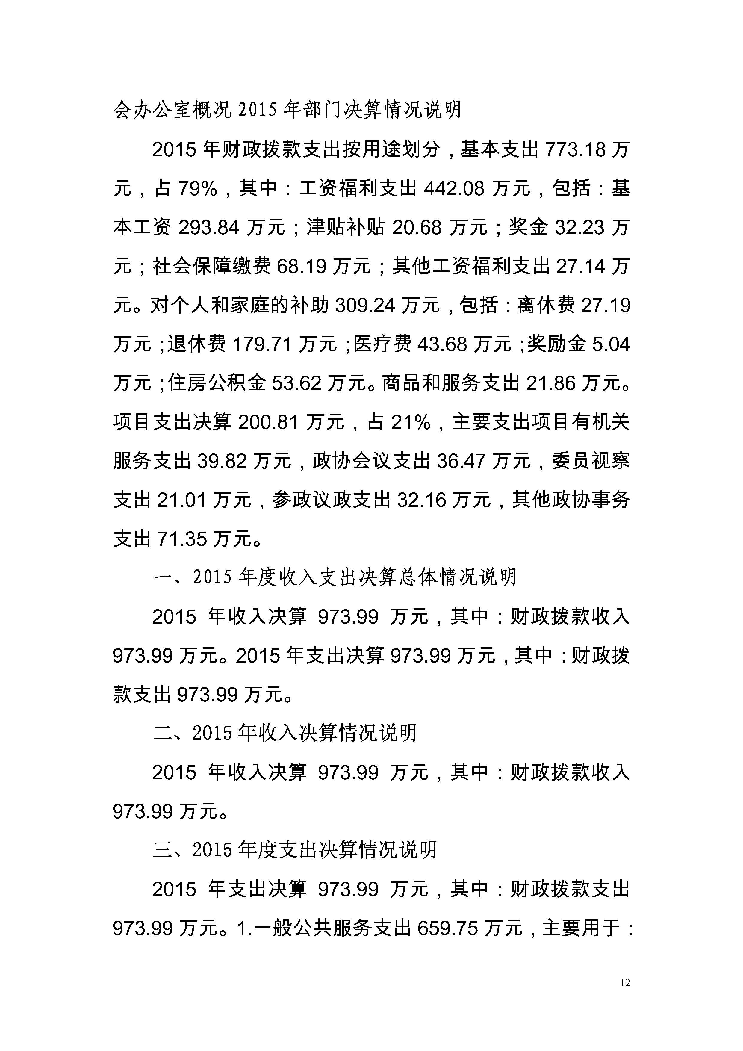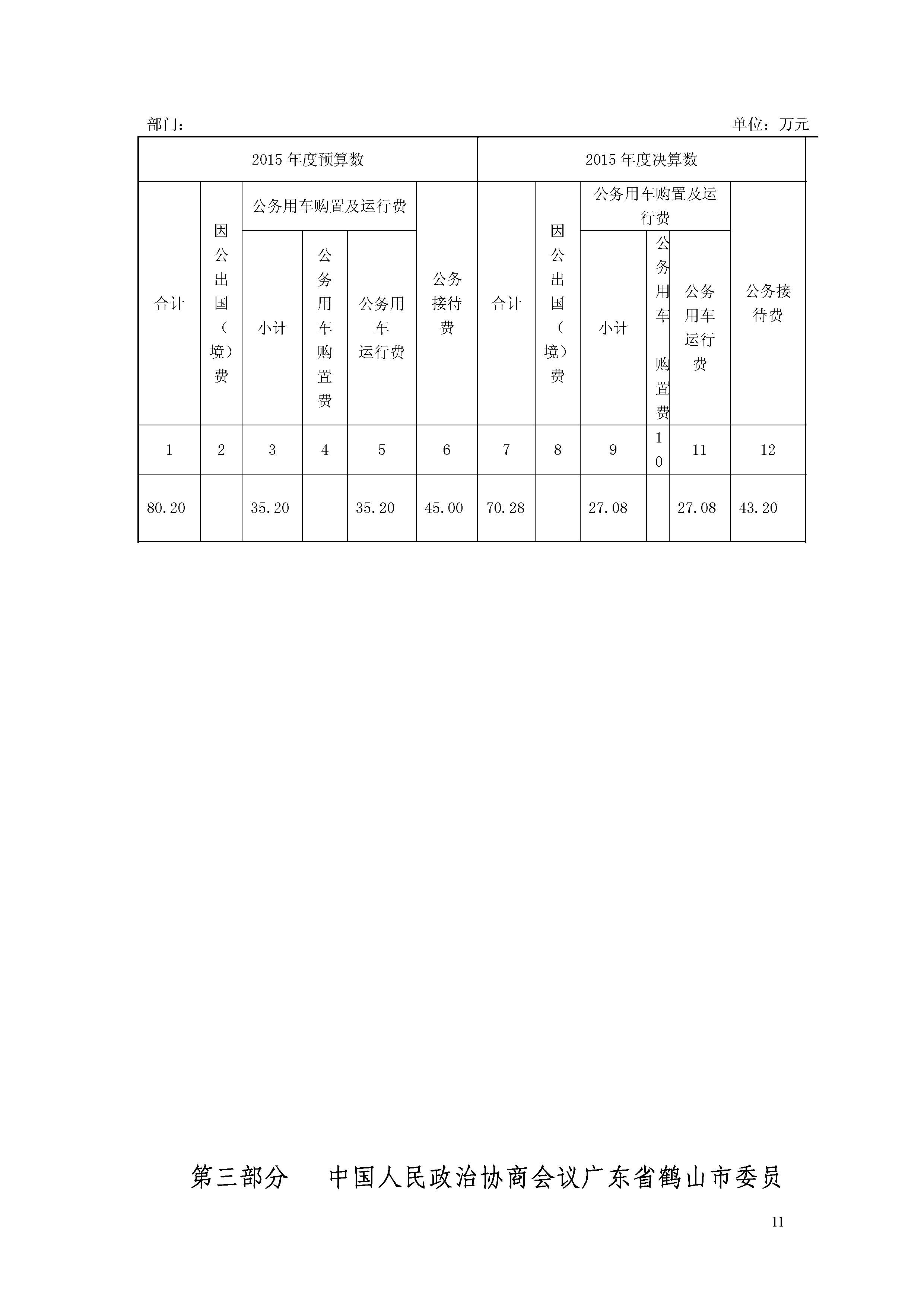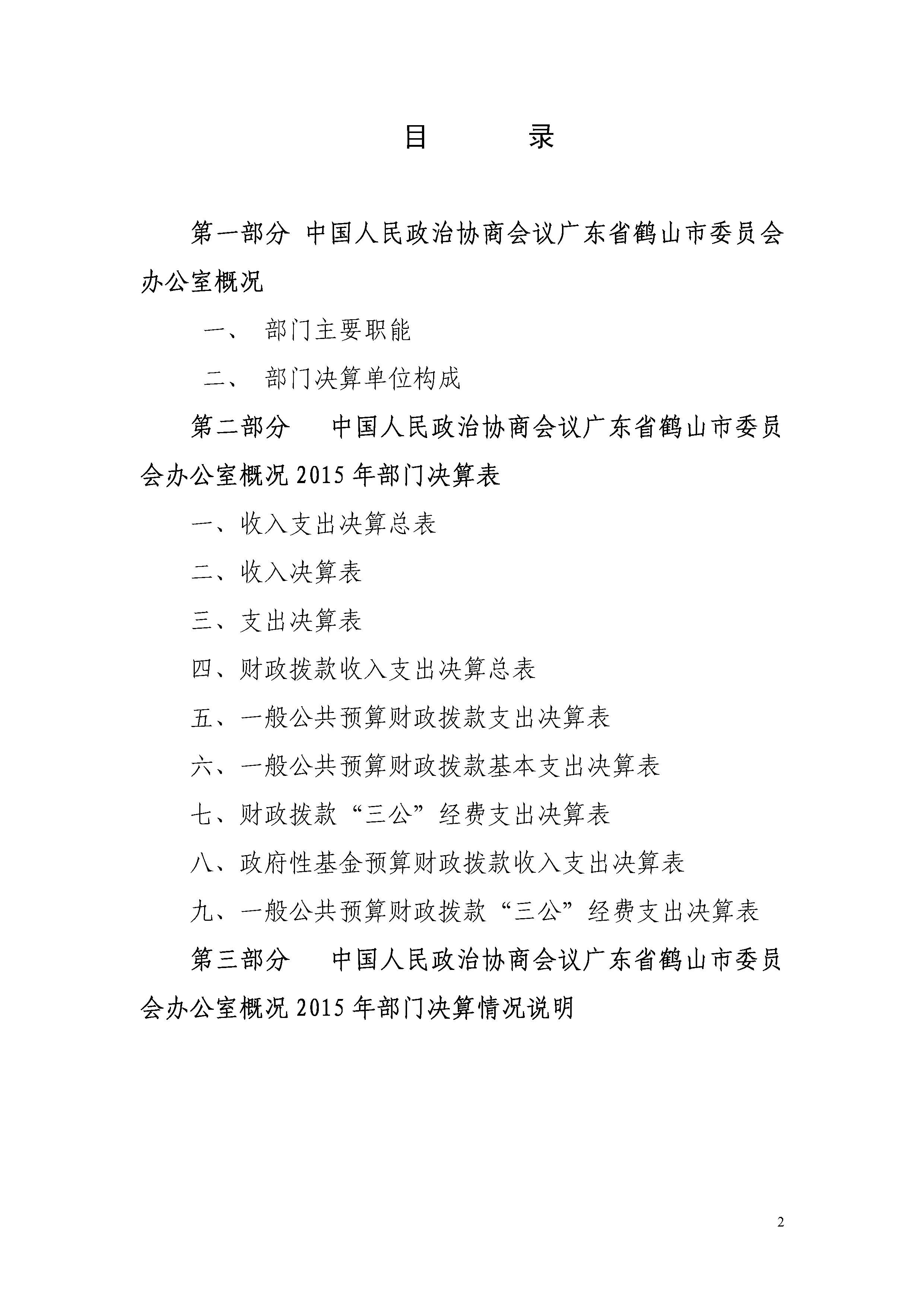 中国人民政治协商会议广东省鹤山市委员会办公室2015年度部门决算公开