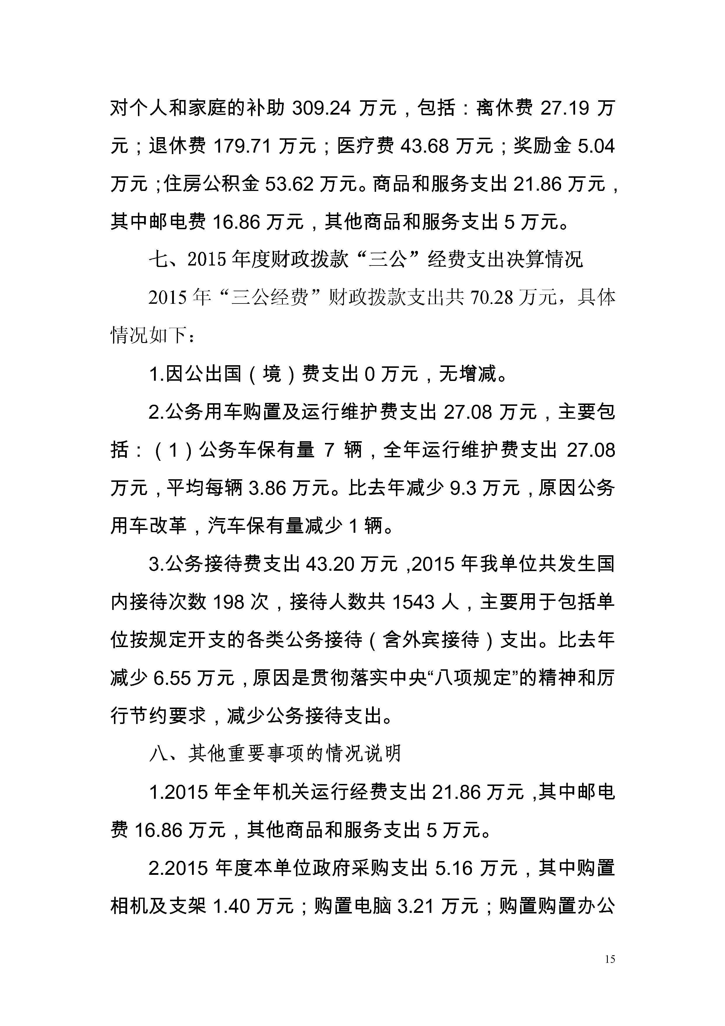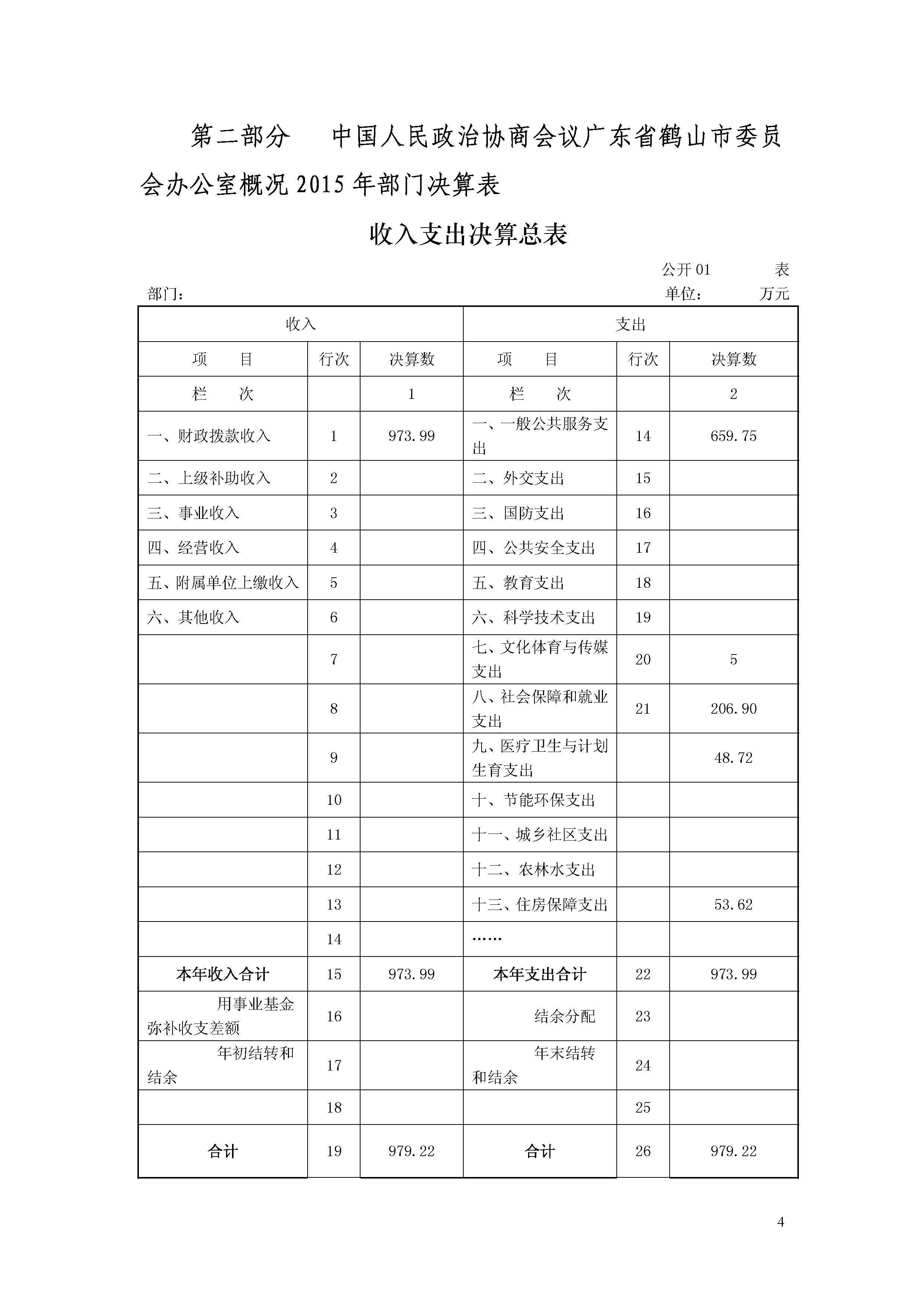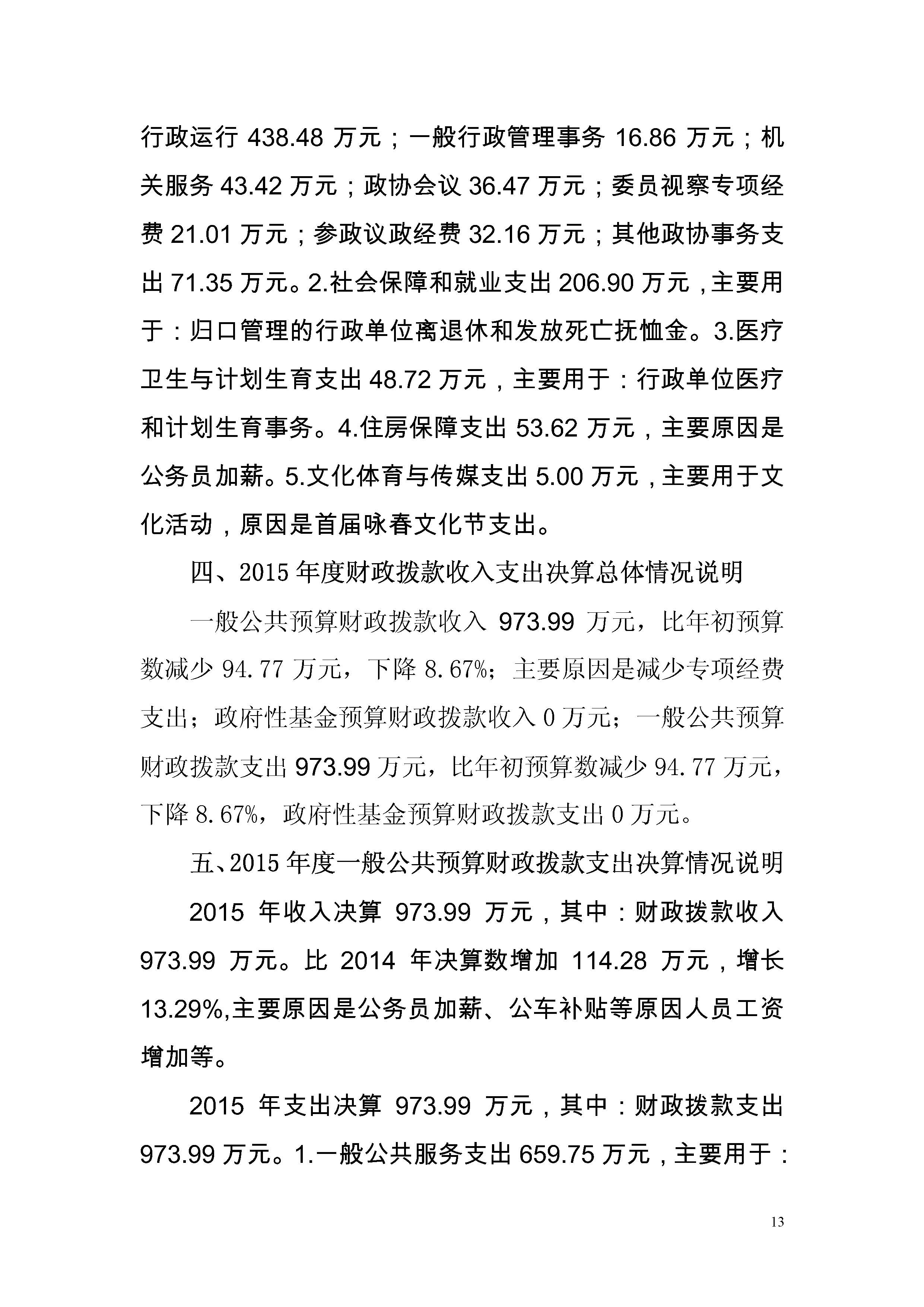 中国人民政治协商会议广东省鹤山市委员会办公室2015年度部门决算公开