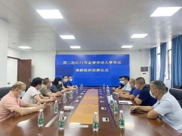 鹤山市共和镇中欧(江门)合作区劳动关系联处中心成功被江门市人力资源和社会保障局、江门市总工会、江门市企业联合会、江门市工商业联合会联合评选认定为江门市第二批金牌劳动人事争议调解组织。