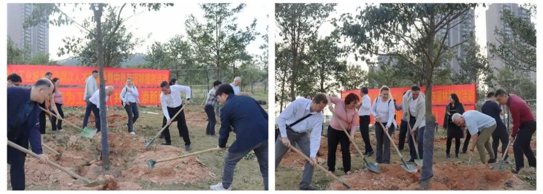 种树活动现场,大家热情高涨,中外友人协同配合,挥锹铲土、扶树正苗、培土浇水,在工业城园区齐心协力种下“中外友谊林”,一棵棵寓意和顺美满的树木生机勃勃,在原有绿化基础上为美丽园区增彩延绿。