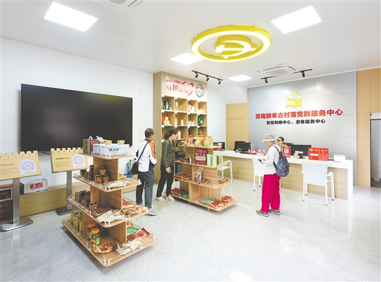 霄南鲜卑古村落党群服务中心内搭建了可休闲、可购物、可求助的综合平台,提高游客的游玩体验。