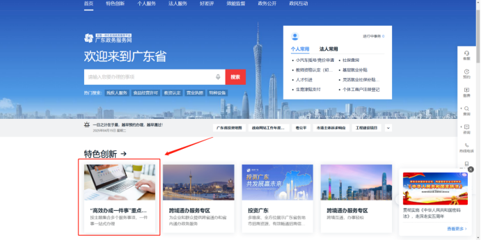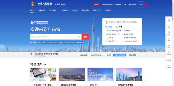 登录【广东省政务服务网】,点击右上角【登录】
