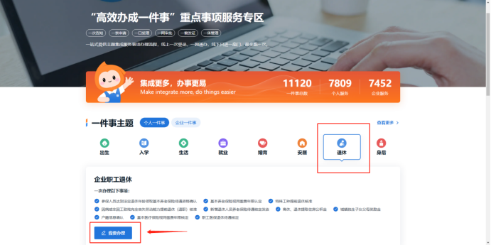 点击【“高效办成一件事”重点事项服务专区】