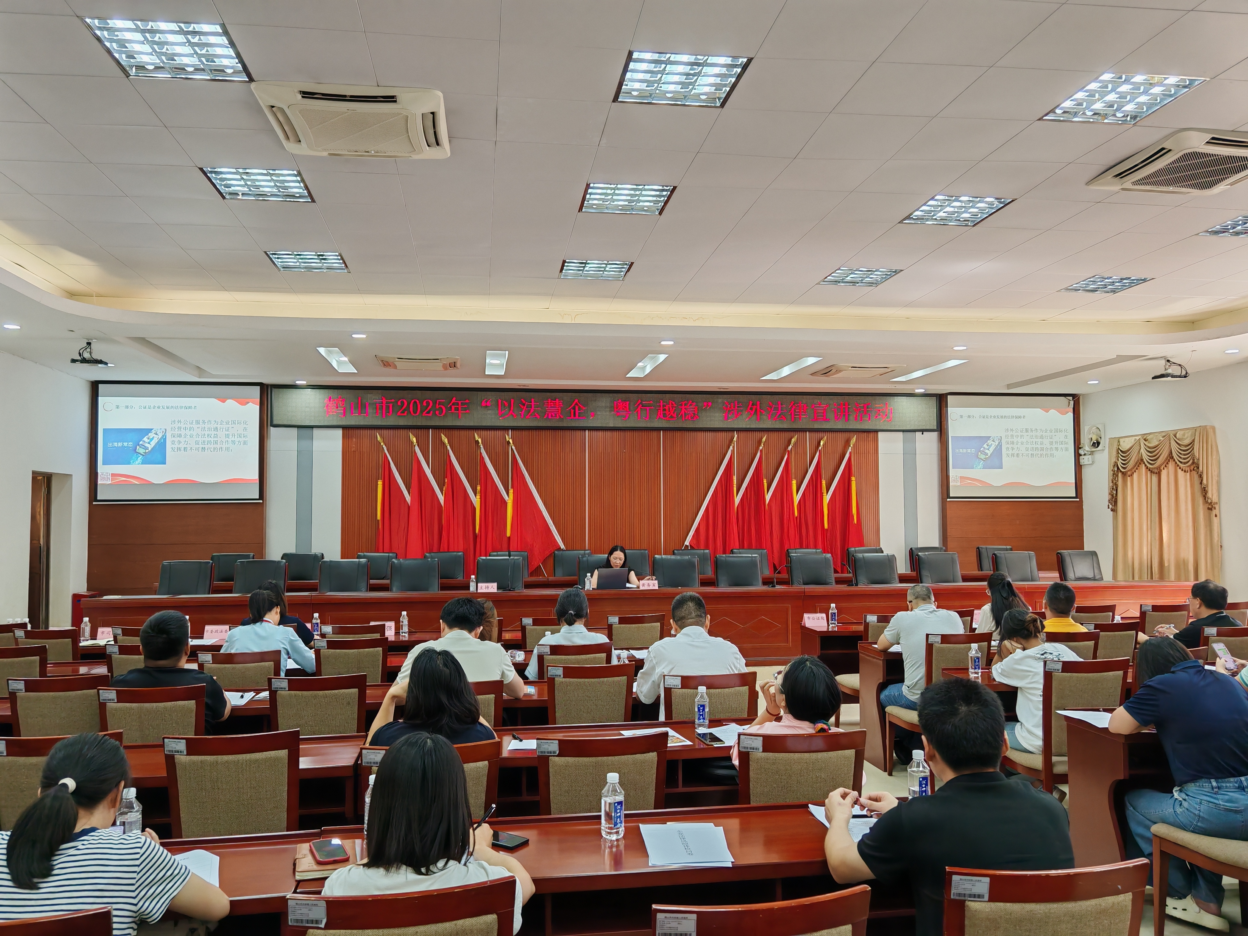本次活动,市司法局采取“企业点餐、司法送餐”的组织形式,做好前期调研工作,广泛听取企业的法律需求,围绕外贸企业的痛点难点,邀请了深圳国际仲裁院江门中心业务骨干、鹤山市公证处涉外公证员、广东五邑律师事务所涉外律师开展专题授课。