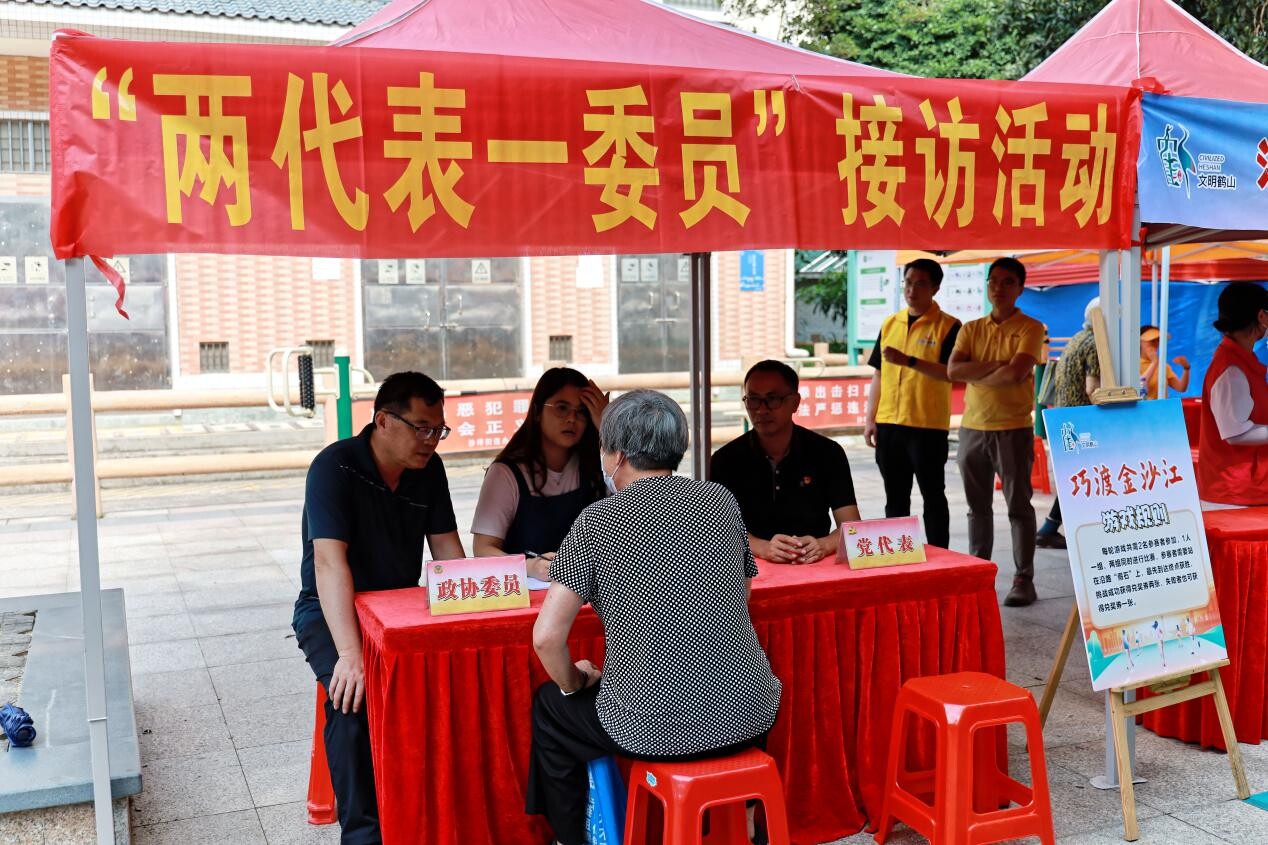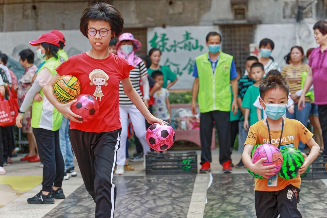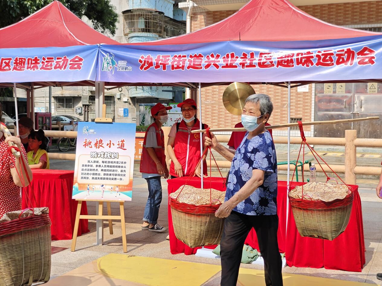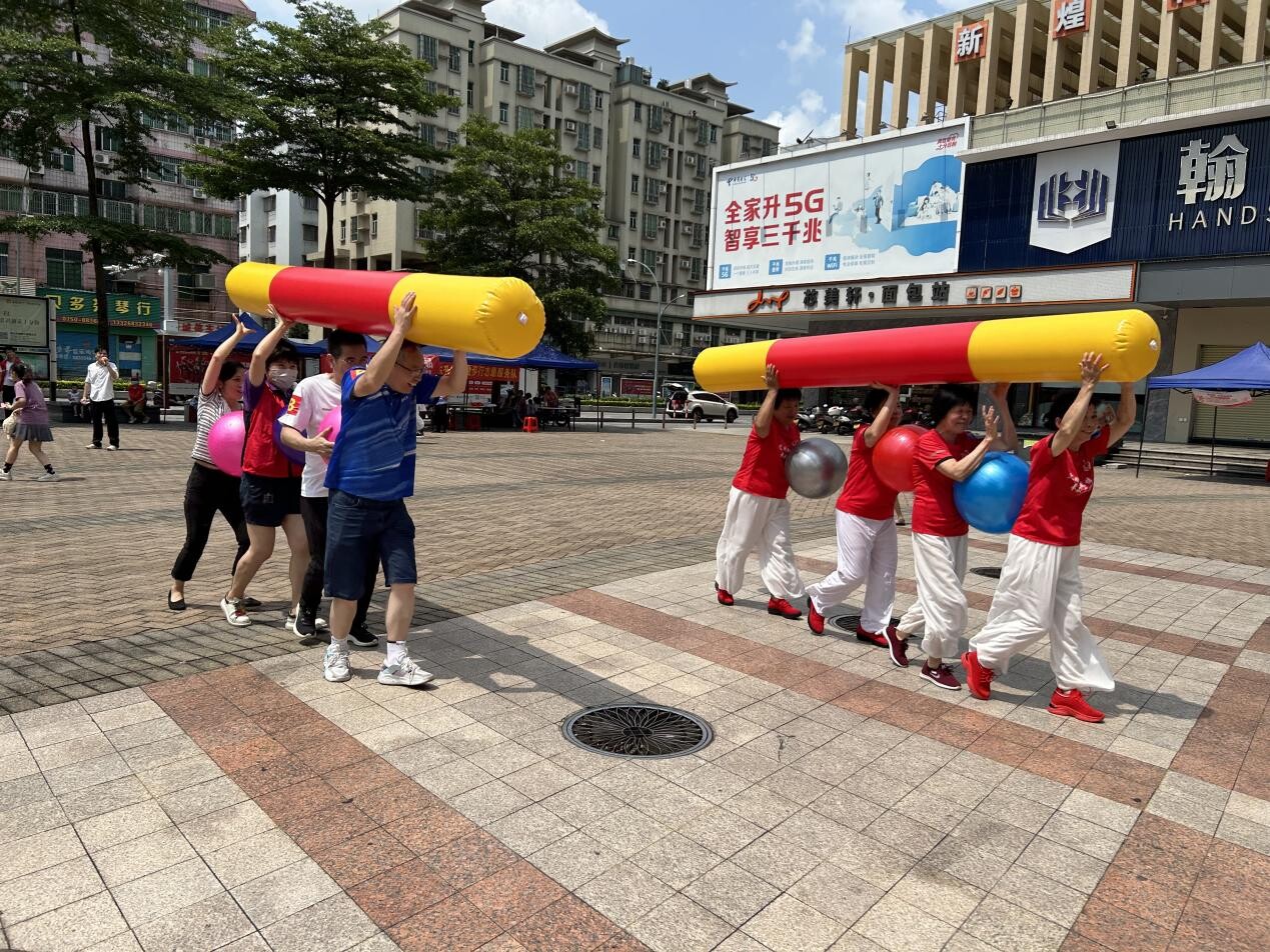 “小心,一定要踩住那边的石头!”“加油!加油!加油!”5月21日,欢笑声、加油声在乐民邨公园传来,兴业社区“党建引领建新功,运动融聚邻里情”社区趣味运动会如火如荼开展着。在“巧渡金沙江”的情景河流中,参赛者正在开动脑筋思考如何快速安全地过河,同场的还有“挑粮小道”项目,参赛者挑起“装满”水稻的箩筐,快步往前冲,以亲身实践的形式传承红色革命精神。此外,活动现场还设置了“两代表一委员”接访摊位、志愿楼长招募摊位,倾听群众声音,宣传创文知识,号召更多居民加入志愿楼长队伍。