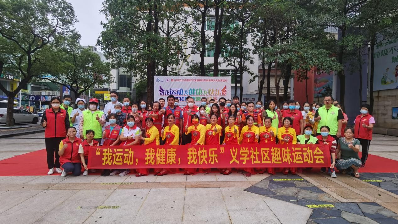 东风吹,战鼓擂,5月23日上午,在参赛队员和观众的掌声和呐喊声中,义学社区“我运动,我健康,我快乐”趣味运动会在新天地广场以文艺汇演的形式拉开帷幕。现场通过“百舸争流勇争先”、“凝心聚力共奋进”、“踔厉奋发向未来”等运动游戏,让群众在参与过程中切实感受在党建引领下的幸福感。为提高大家对鹤山创文工作的知晓度和参与率,活动现场还设置了创文知识宣传、中医院义诊、金融知识普及、党员志愿服务队咨询等摊位,号召居民群众为今后鹤山创建全国文明城市贡献自己一份力。