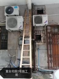 翻新维修前(防盗门缺失、管道老旧、消防设施损坏)