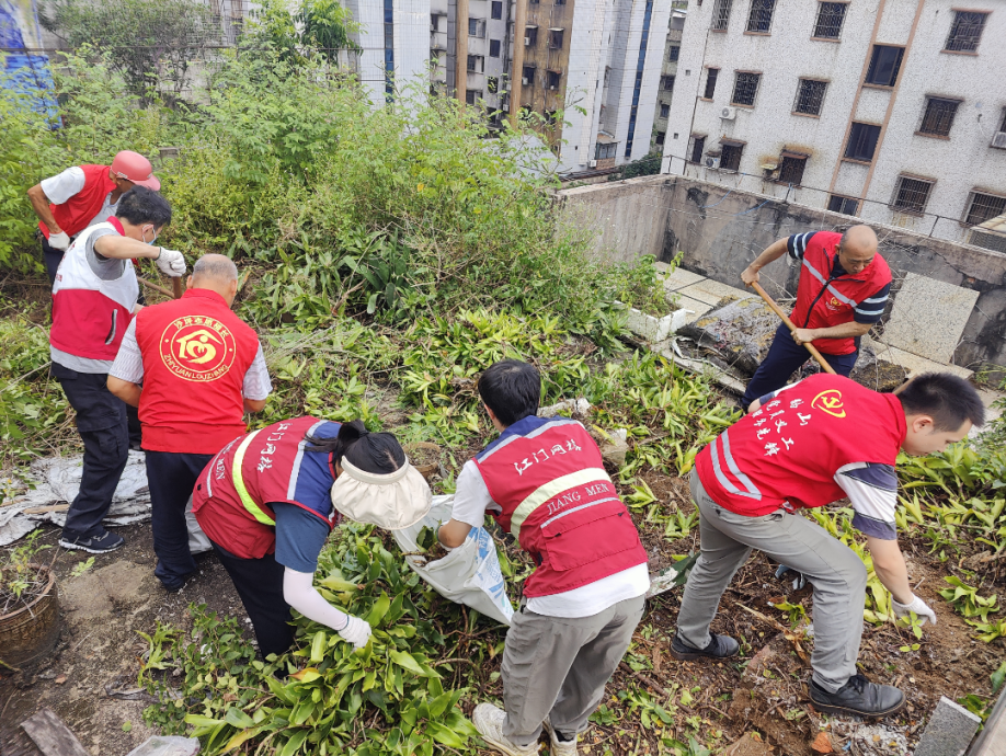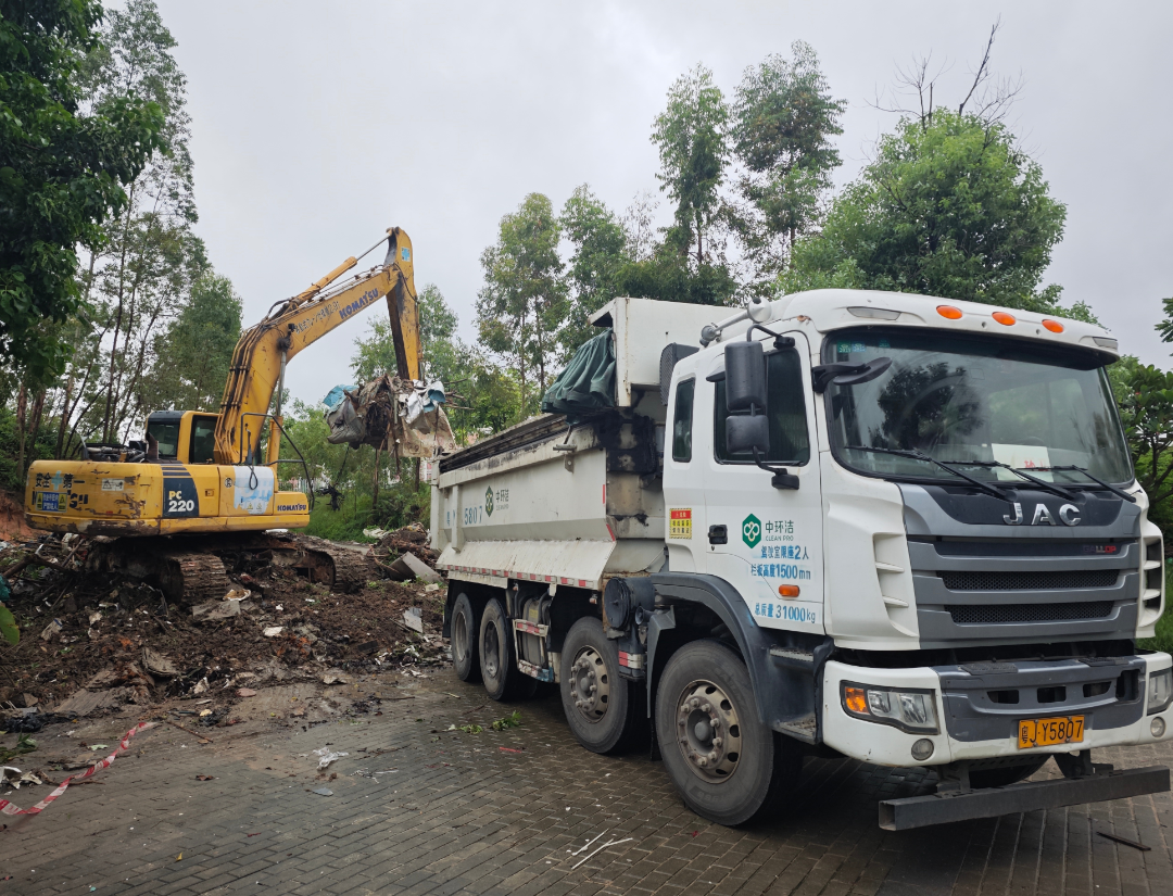 在云山诗意小区附近的一处卫生黑点,沙坪街道谷埠社区、15个市直部门、云山诗意小区物业集中力量开展防蚊灭蚊爱国卫生运动,以“分片包干+重点攻坚”模式,将10余亩区域划分为9个片区。120余名党员干部、志愿者、网格员、物业工作人员合力清除堆积杂物、各类积水和淤泥杂草,2台挖掘机、6台垃圾清运车齐上阵,拆除私搭的工具房和棚架约30间,清理废弃泡沫箱等容器,高效清运垃圾杂物约60吨,全面清除蚊虫孳生地。