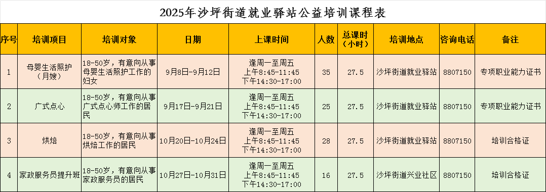 为满足市场需求,提升居民就业竞争力,鹤山市沙坪街道就业驿站搭建企业与求职者双向奔赴的供需对接平台,并提供举办招聘活动、就业指导、政策解答、技能培训等服务。开设的课程紧密结合当前就业趋势,注重实操技能,帮助学员快速掌握一技之长,实现高质量就业或创业。