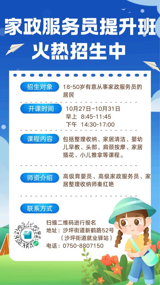 课程主要包括整理收纳、家居清洁、婴幼儿早教、头部、肩颈按摩、家居插花、小儿推拿等课程。本期课程培训5天,共27.5课时,由高级育婴员、高级家政服务员、家居整理收纳师秦红艳授课,课程结束后考取培训合格证,通过理论授课和实践操作相结合的教学模式,确保学员学用结合。本课程适合有意从事家政服务的人士。