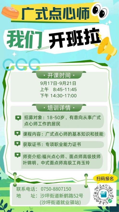 课程旨在培养专业的广式点心师,帮助学员掌握传统点心的制作技艺。课程主要包括面点原料选择与处理、面团制作与发酵技巧、经典广式点心制作、食品安全与卫生等培训,每期课程培训5天,共27.5课时,课程结束后考取专项职业能力证书,课程由资深广式点心师傅亲自授课,传授独家技艺。小班教学,确保每位学员都能掌握制作技巧,提供就业推荐。适合对广式点心制作感兴趣的人士,希望从事餐饮行业或创业的学员。