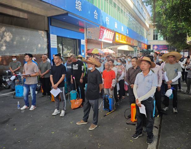 号召令发出后,辖区规上企业、小微企业一呼百应,优先选派具备一定卫生防护知识、责任心强的人员投身“疫”线,10月4日上午,沙坪街道300人消杀突击队精锐出战,以快速响应筑牢“双节”期间蚊媒传染病防控的铜墙铁壁。