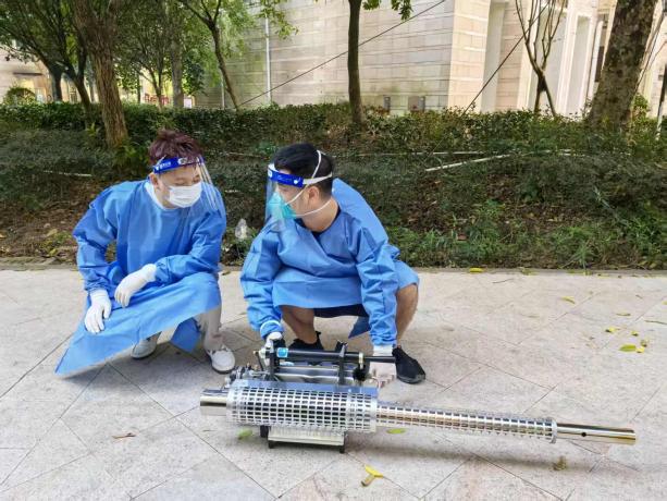 “药物配比必须按照标准精准调配,常量喷雾剂要喷洒在2米以下的墙壁以及植物叶底……”岗前培训现场,沙坪街道片区负责领导逐项讲解喷壶、常量喷雾器和热烟雾机的消杀要点,重点讲解喷洒墙壁、绿植叶底的操作规范,队员们全神贯注,快速掌握了消杀流程、药剂配比、器械使用及防护规范,为实战打下坚实基础。