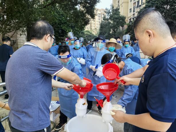 为贯彻落实江门市疫情防控指挥部的统一部署,沙坪街道迅速响应、高效组织,10月2日晚,沙坪街道连夜集结街道300名骨干队员、28个村(居)各50名队员组成共1700人的“消杀突击队”。队伍聚焦涉疫区域、重点孳生地等实施“靶向攻坚、多线推进”灭蚊策略,与全市消杀力量协同开展拉网式作业。