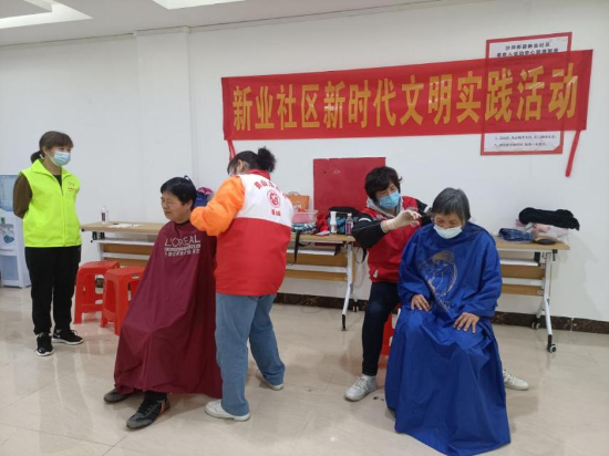 ▲志愿者们为社区居民提供便民义剪服务