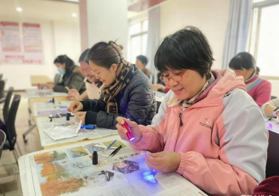 ▲新业社区开展三八妇女节“非遗胸针”制作活动