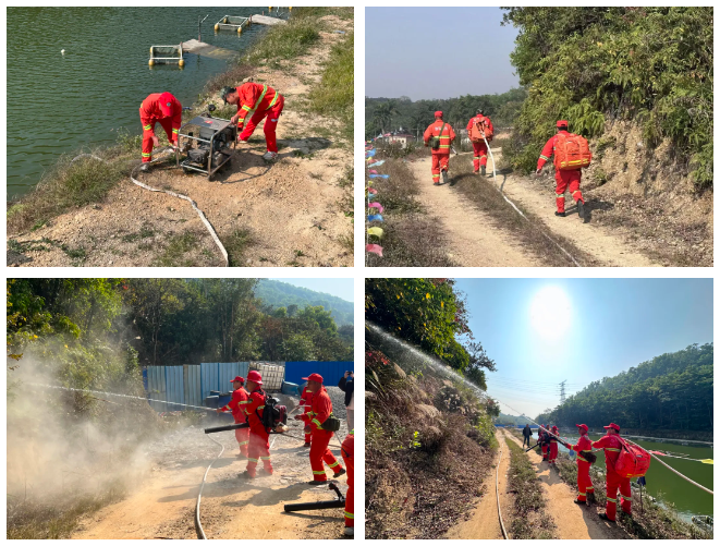 整个过程中扑火队员利用高压水枪、风力灭火机等扑火器具,进行了快速、高效、有序的扑救。整个演练做到了快速反应、分工明确、配合紧密,达到了预期的效果。