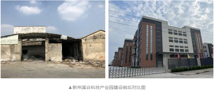 产业升级注入动能。东溪村积极探索低效用地盘活新路径,成功引入新州溪谷科技产业园项目,通过“工改工”模式拆除废旧厂房1万平方米,新建标准厂房约6.8万平方米,实现“寸土”生“寸金”,为村集体经济发展注入新活力。同时,东溪村配合镇域发展布局,盘活东溪开发区飞机场片区 120 亩村级工业园用地,建设鹤山市址山镇厨卫五金科技产业园,持续壮大村集体经济 “造血” 能力。
